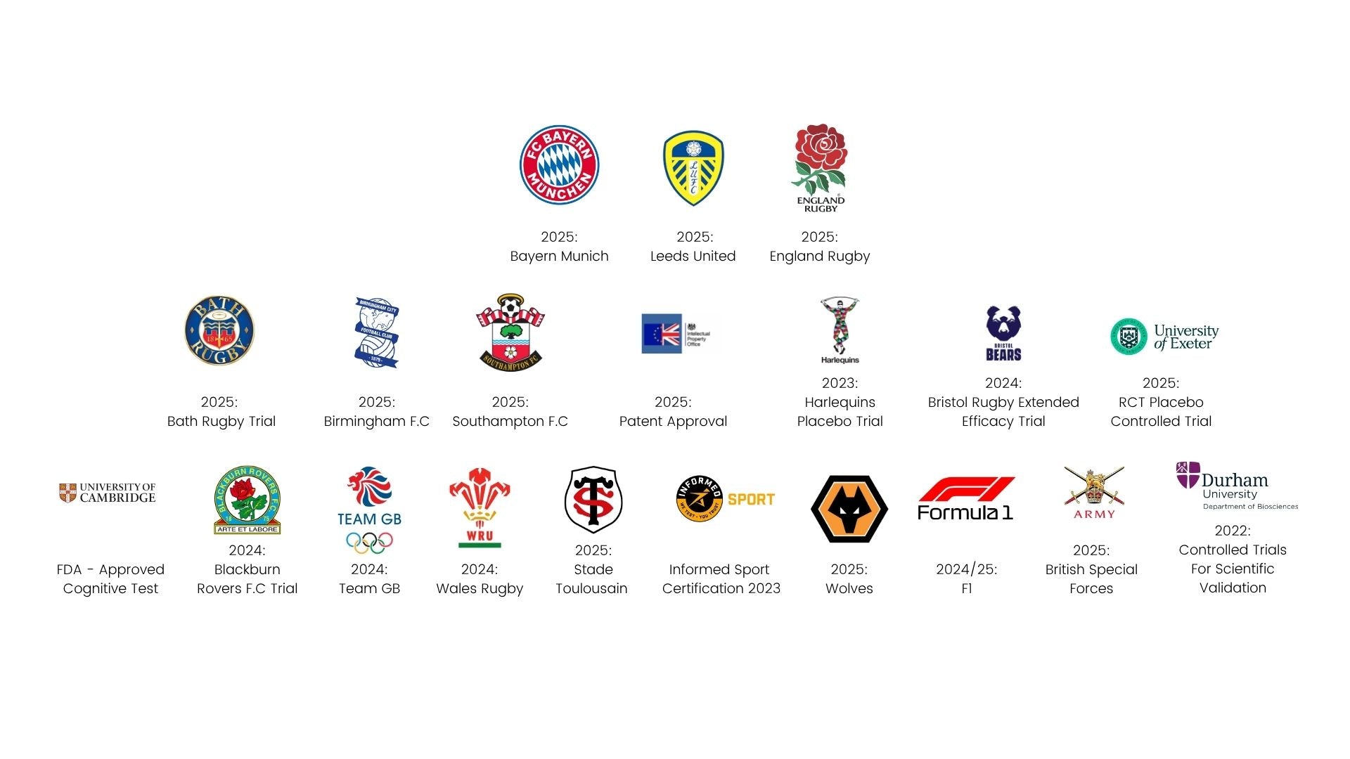 Bristol, Tech Athletes, McGuigan Gym, Blackburn Rovers, Sale Sharks, Team GB 7s (Men & Women), Toulouse Rugby, WRU/RGC, Blackburn Rovers, Wigan Athletic F.C, Southampton Saints F.C., Birmingham F.C, Bath Rugby, Leeds United F.C.